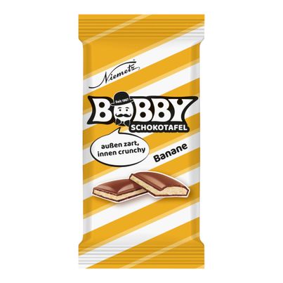 Die Bobby Tafel Banane von NIEMETZ überzeugt mit einer harmonischen Kombination aus knusprigen Weizen-Reis-Crisps und einer softe Füllung mit leckerem Bananengeschmack. Umhüllt von feinster Milchschokolade (mindestens 28% Kakao) ist dieser Snack ein echter Genuss. Ohne Gentechnik und mit natürlichen Zutaten, ideal für eine kleine Auszeit. Perfekt für Naschkatzen, die Wert auf Qualität legen!