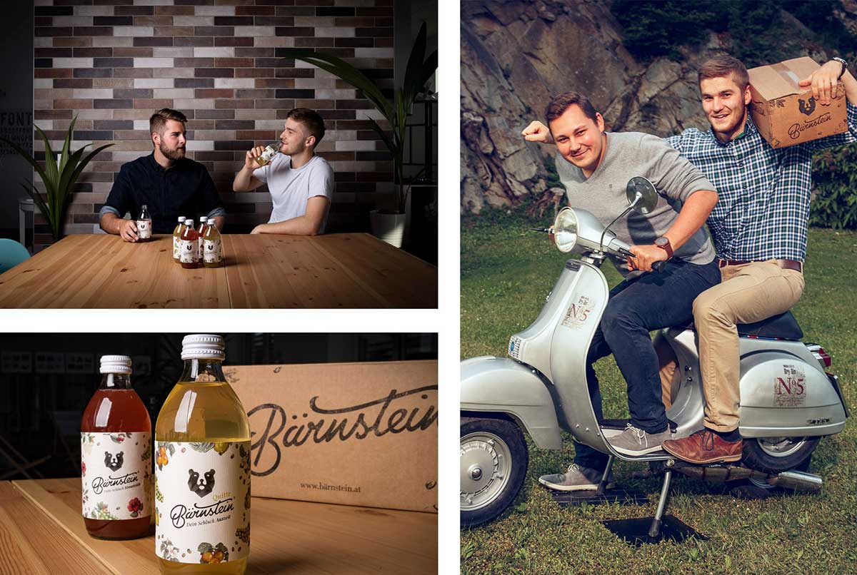 Martin Paul und Lukas Renz aus St. Pölten sind die Köpfe hinter der Marke Bärnstein. Die Idee zu Bärnstein kam den beiden im Sommer 2015 während ihrer Arbeit in einem Gasthaus, als Reaktion auf die große Neugierde der Kunden auf neue, außergewöhnliche Getränke. “Mit unserem eigenen Getränk wollten wir unseren Gästen etwas Erfrischendes, das gleichermaßen Energie für Tag und Nacht spendet sowie etwas Einzigartiges, das geschmacklich und optisch in Erinnerung bleibt, bieten.” Bärnstein ist Natur abgefüllt in Flaschen – ungezähmte Wildnis, die vor Stärke und Freiheit strotzt. Höchste Qualität, Genuss und Naturverbundenheit sind Werte, die Bärnstein voll und ganz vertritt.