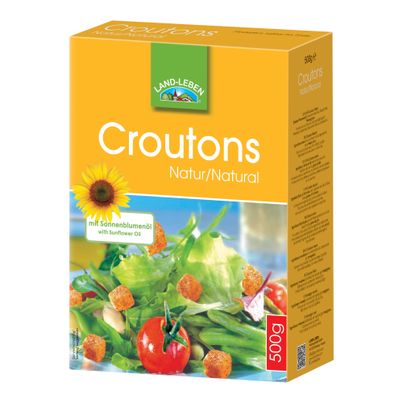 LAND-LEBEN Croutons natur bringen knusprigen Genuss auf deinen Tisch. Die fein gerösteten Weißbrotwürfel aus Österreich sind ideal für klare oder gebundene Suppen und verleihen Salaten sowie Vorspeisen das gewisse Etwas. Mit hochwertigen Zutaten wie Weizenmehl und Sonnenblumenöl sind sie eine perfekte Ergänzung für deine Küche. Schneller Genuss, der schmeckt!