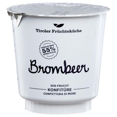 Zutatenliste Brombeeren, Zucker, Zitronensaftkonzentrat, Geliermittel: Pektin Hergestellt aus: 55g Brombeeren je 100g