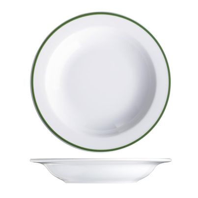 Der tiefen Teller von LILIEN mit einem Durchmesser von 220 mm ist ideal für Suppen, Pasta oder Eintöpfe. Mit seinem eleganten Grünband-Design setzt er stilvolle Akzente auf deinem Tisch. Dank der Spülmaschinenfestigkeit ist die Reinigung mühelos. Perfekt für den täglichen Gebrauch oder besondere Anlässe!