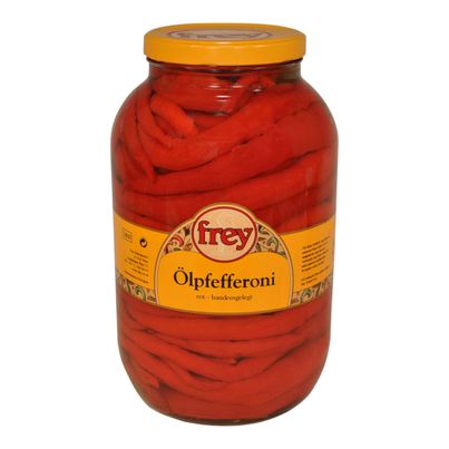 Verleihe deinen Gerichten mit den Ölpfefferoni rot von FREY eine würzige Note. Diese pikanten Pfefferoni sind in hochwertigem Sonnenblumenöl eingelegt und mit einer ausgewogenen Mischung aus Gewürzen verfeinert. Das perfekte Topping für Pizza, Pasta und Salate. Die natürliche Schärfe bringt Schwung auf deinen Tisch, während die Konservierungsstoffe für eine lange Haltbarkeit sorgen. Ideal für alle, die sich nach authentischem Geschmack sehnen.